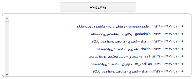 این سامانه به هر فرد تنها یک نام کاربری و رمز عبور اختصاص می دهد و با همان نام کاربری می تواند به همه نقش های خود در همه نشریات دسترسی داشته باشد. توضیحات هر بخش از این سامانه در تصاویر زیر ارایه شده است.نسخه اولیه این سامانه برای مقالات عرضه شده است. اما با داشتن امکان تغییر و تنظیم نقش ها و عناوین، امکان استفاده از آن برای بررسی هر نوع سندی وجود خواهد داشت.